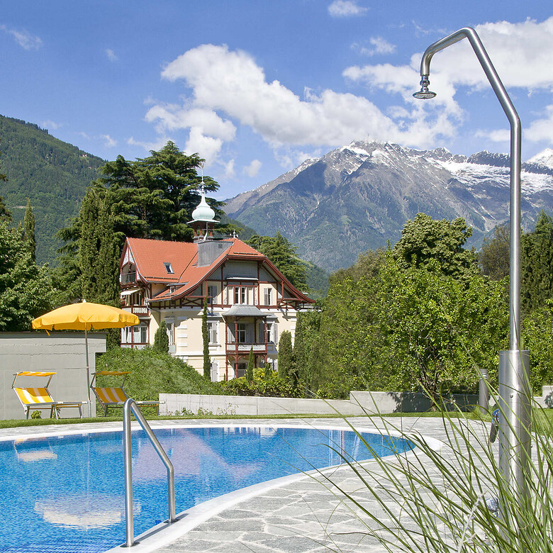 Grazie alla nostra posizione strategica, potete lasciare tranquillamente la vostra auto nel nostro parcheggio sotterraneo. Il centro della città, con le famose Terme di Merano, è raggiungibile a piedi in soli 10 minuti e la fermata dell'autobus - che vi porta sia al centro che direttamente alla funivia di Merano 2000 - è proprio dietro l'angolo. Nonostante la vantaggiosa vicinanza al centro, potrete godere di una tranquillità idilliaca, circondati da un giardino di 3000 m², in uno dei quartieri più belli di Merano.